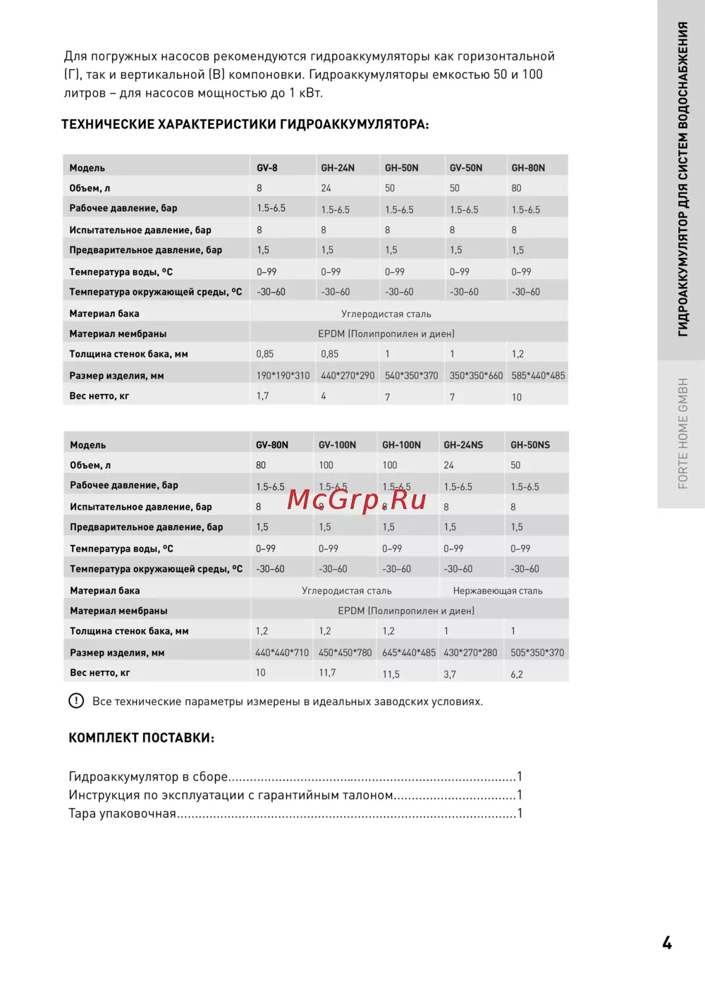 - Гидроаккумулятор для систем водоснабжения forte home gmbh p.4