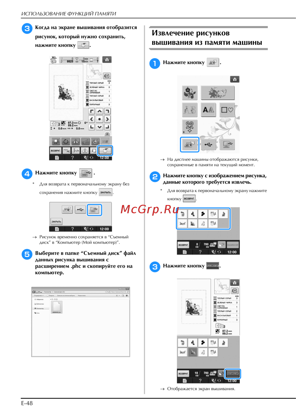 Узнайте, как сохранить рисунки вышивания на съемный диск и извлечь их на компьютер. Пошаговая инструкция для удобного использования функций памяти.