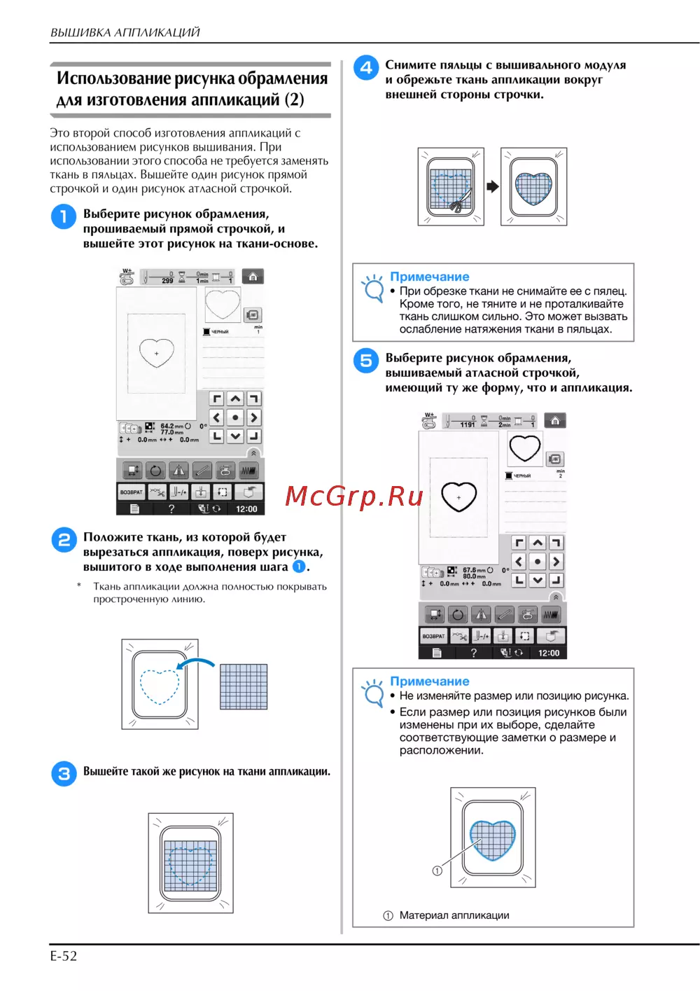 - Вышивания нажмите кнопку p.158