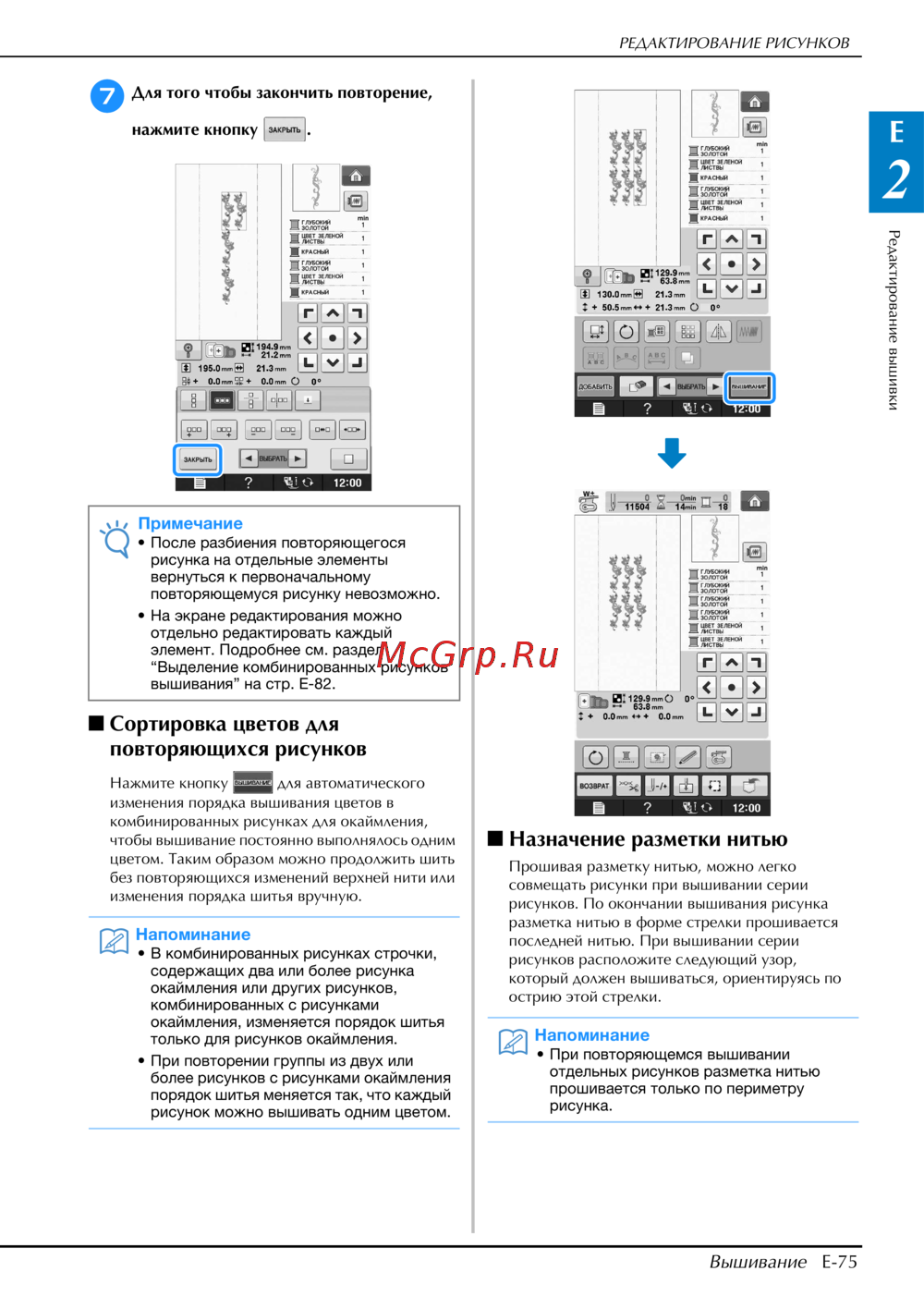 - Использование сенсорных функций в режиме вышивание и редактирование вышивки 58 p.8