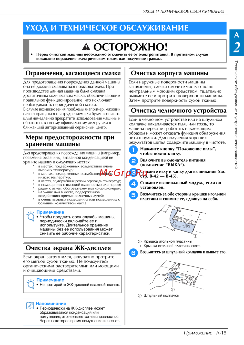 - Очистка челночного устройства p.165