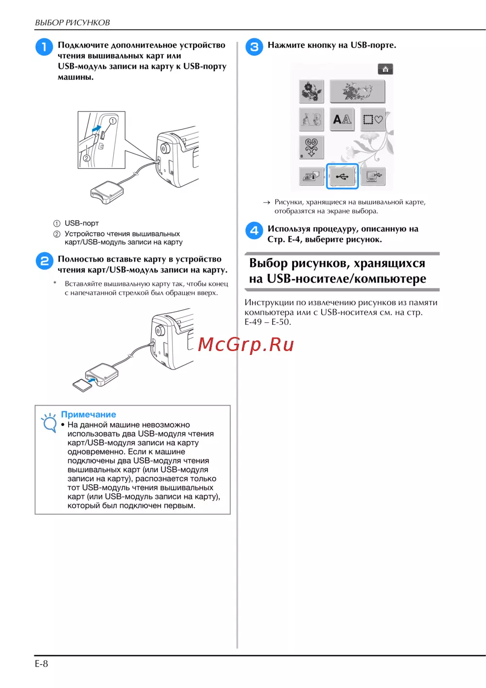 Узнайте, как подключить дополнительные устройства для чтения вышивальных карт и выбрать рисунки для вышивки. Подробные инструкции и советы по использованию.