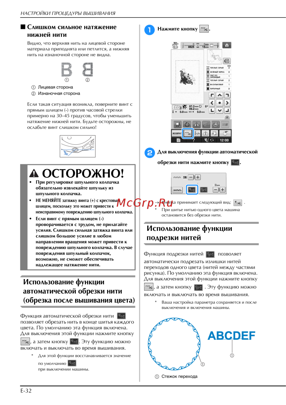 Узнайте, как правильно настроить натяжение нижней нити и использовать функции автоматической обрезки при вышивании. Подробные инструкции и советы.