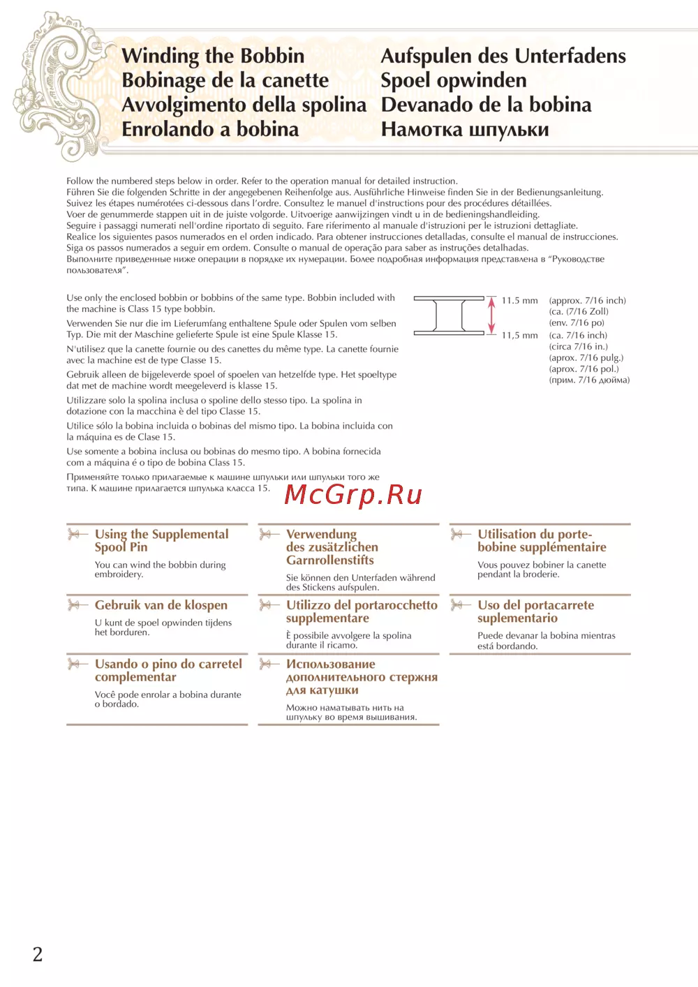- Winding the bobbin aufspulen des unterfadens bobinage de la canette spoel opwinden avvolgimento della spolina devanado de la bobina enrolando a bobina намотка шпульки p.6