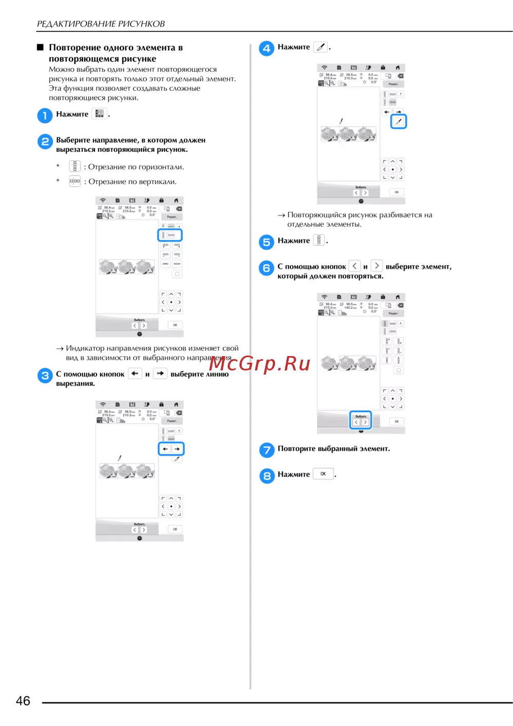 - Декоративная строчка вокруг рисунка вышивания функция стежки p.103