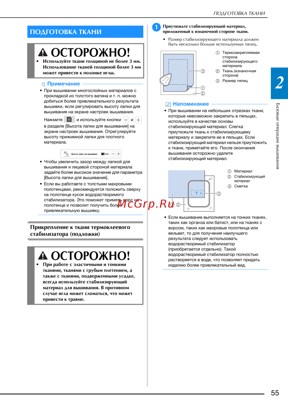 • Используйте ткани толщиной не более 3 мм.