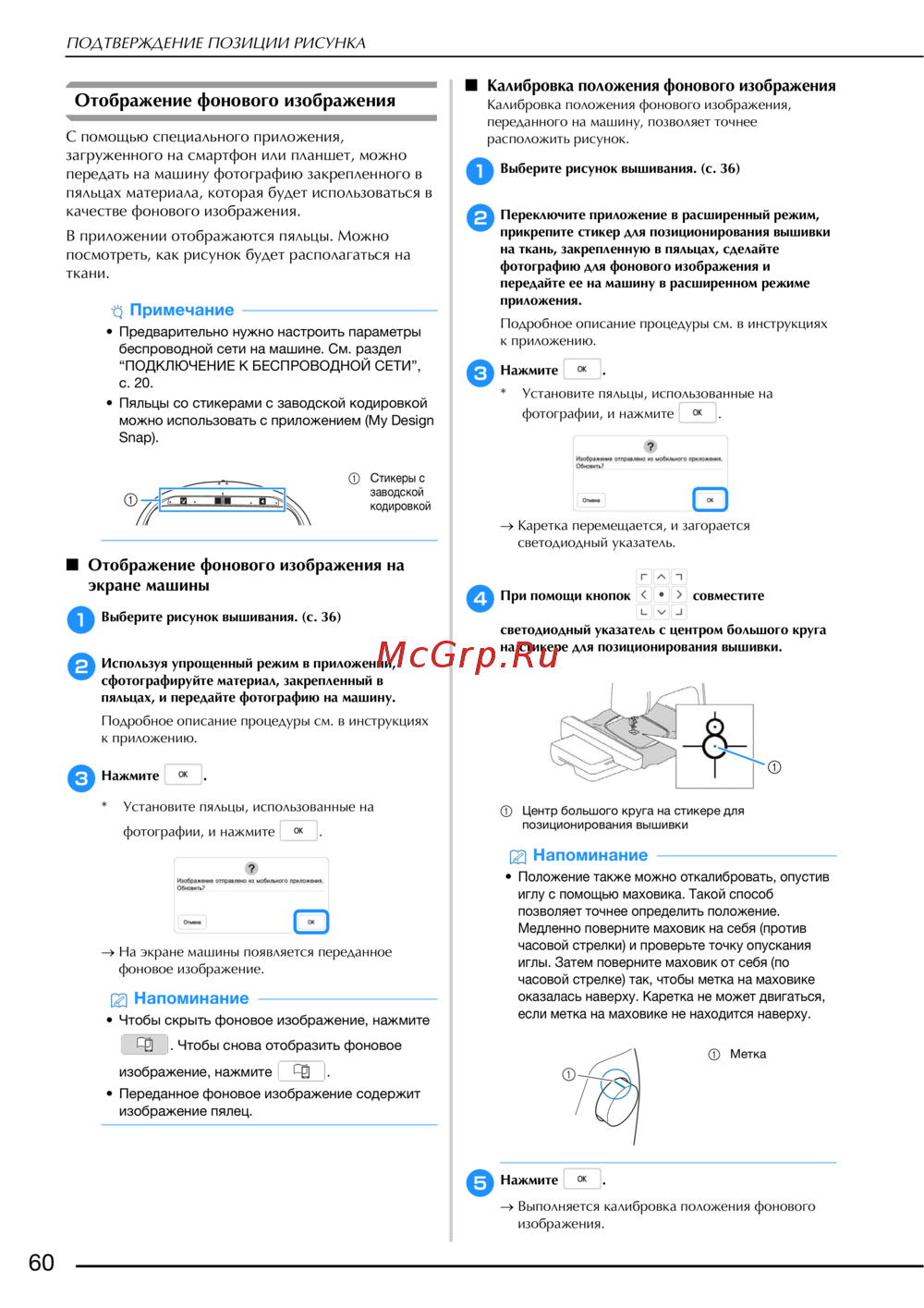 - Замена лапки для вышивания w со светодиодным указателем p.109