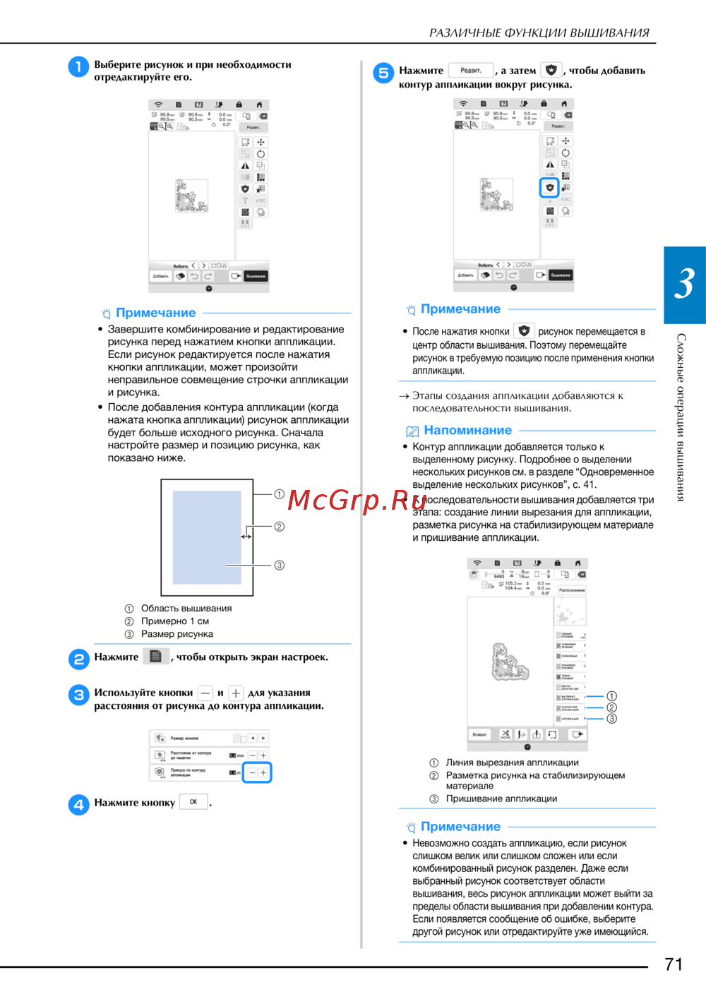 - Декоративная строчка вокруг рисунка вышивания функция стежки p.103