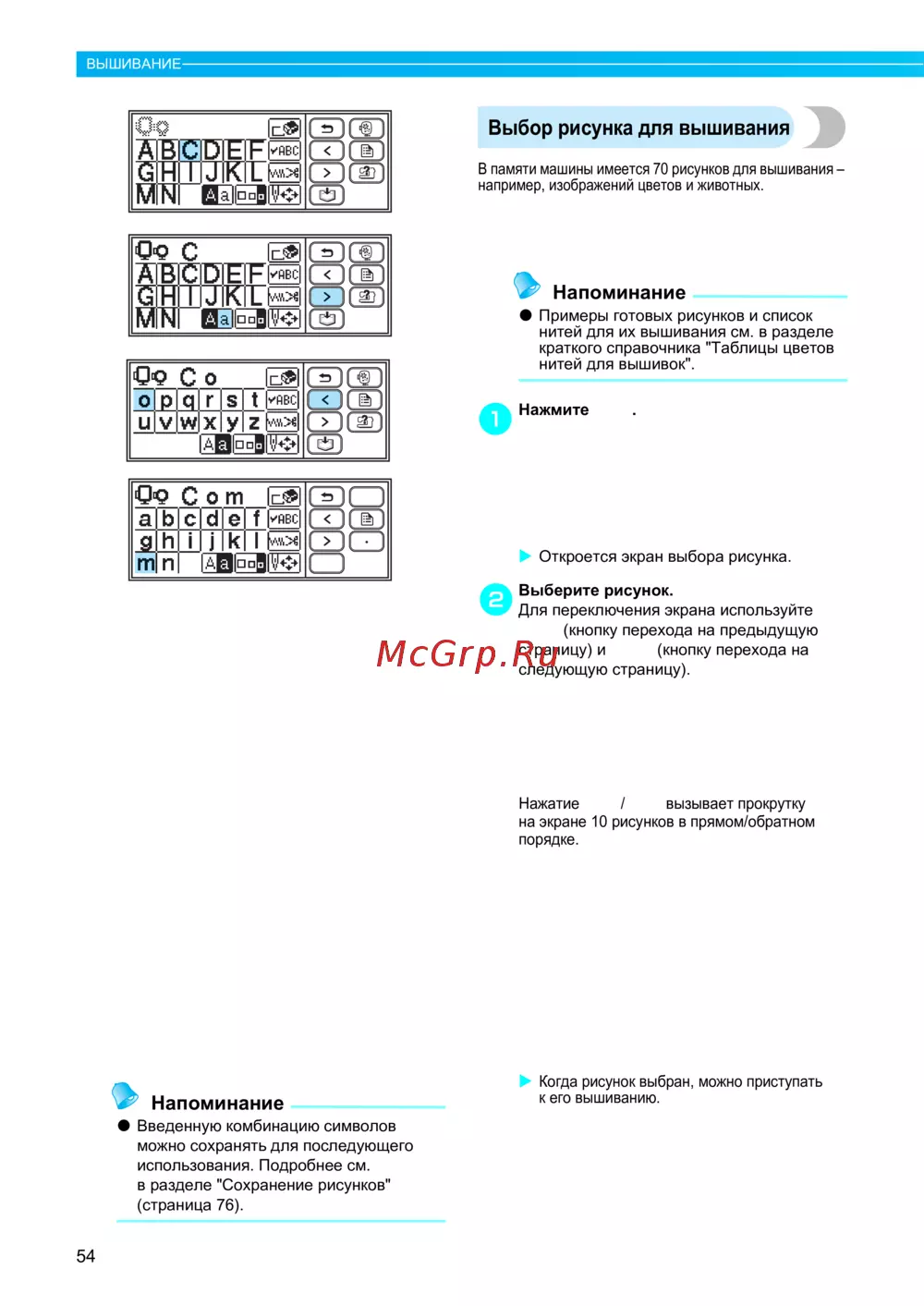 - Передача рисунков для вышивания с компьютера на машину p.75