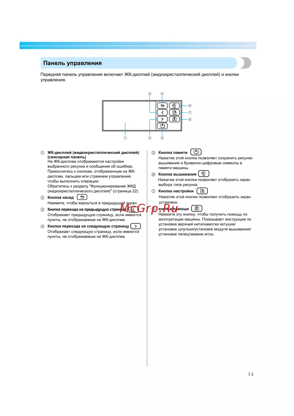 - Кнопки управления позволяют выполнять различные основные операции машины p.14