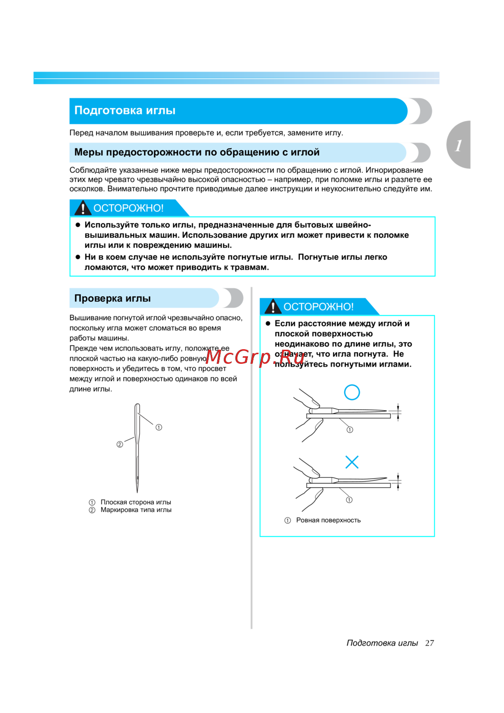 z Ни в коем случае не используйте погнутые иглы. Погнутые иглы легко