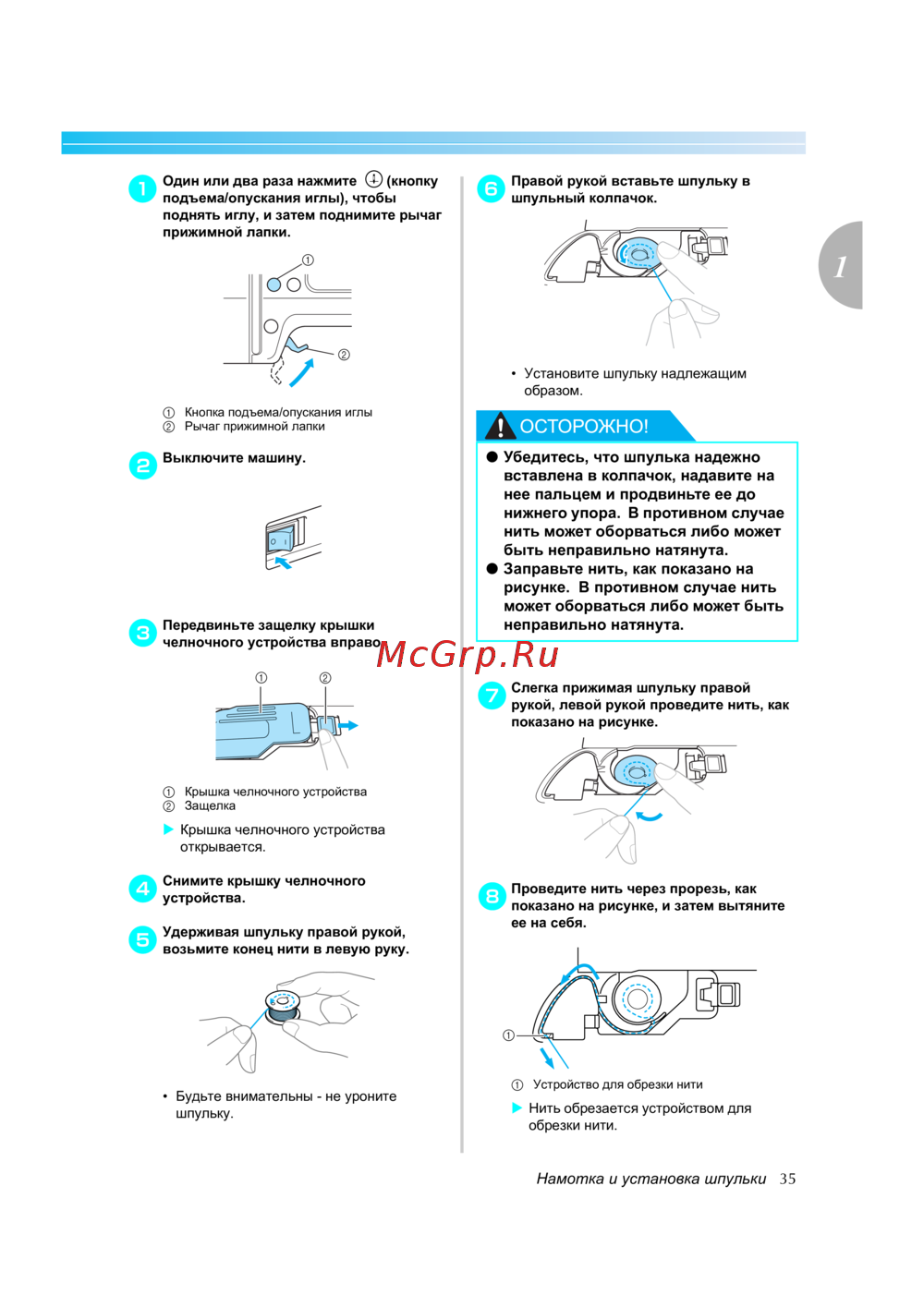 Намотка и установка шпульки 35