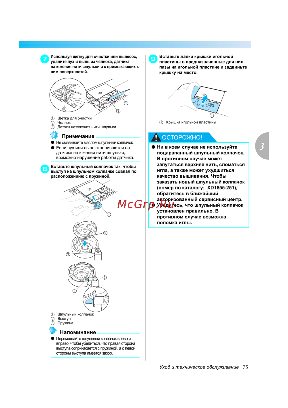 - Очистка челночного устройства p.76