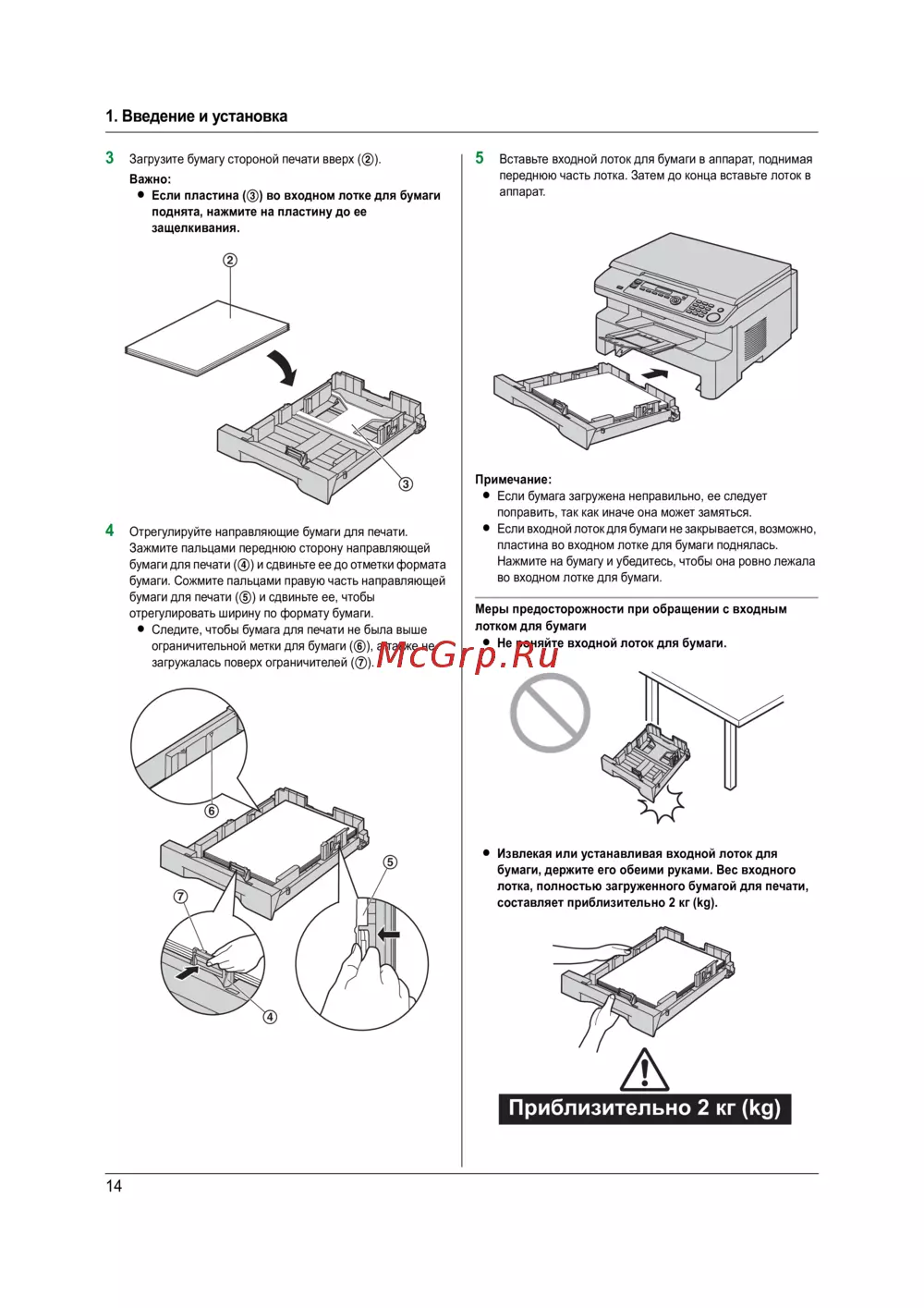 Panasonic KX-MB773RU — как правильно загружать бумагу в печатающее устройство [14/88]