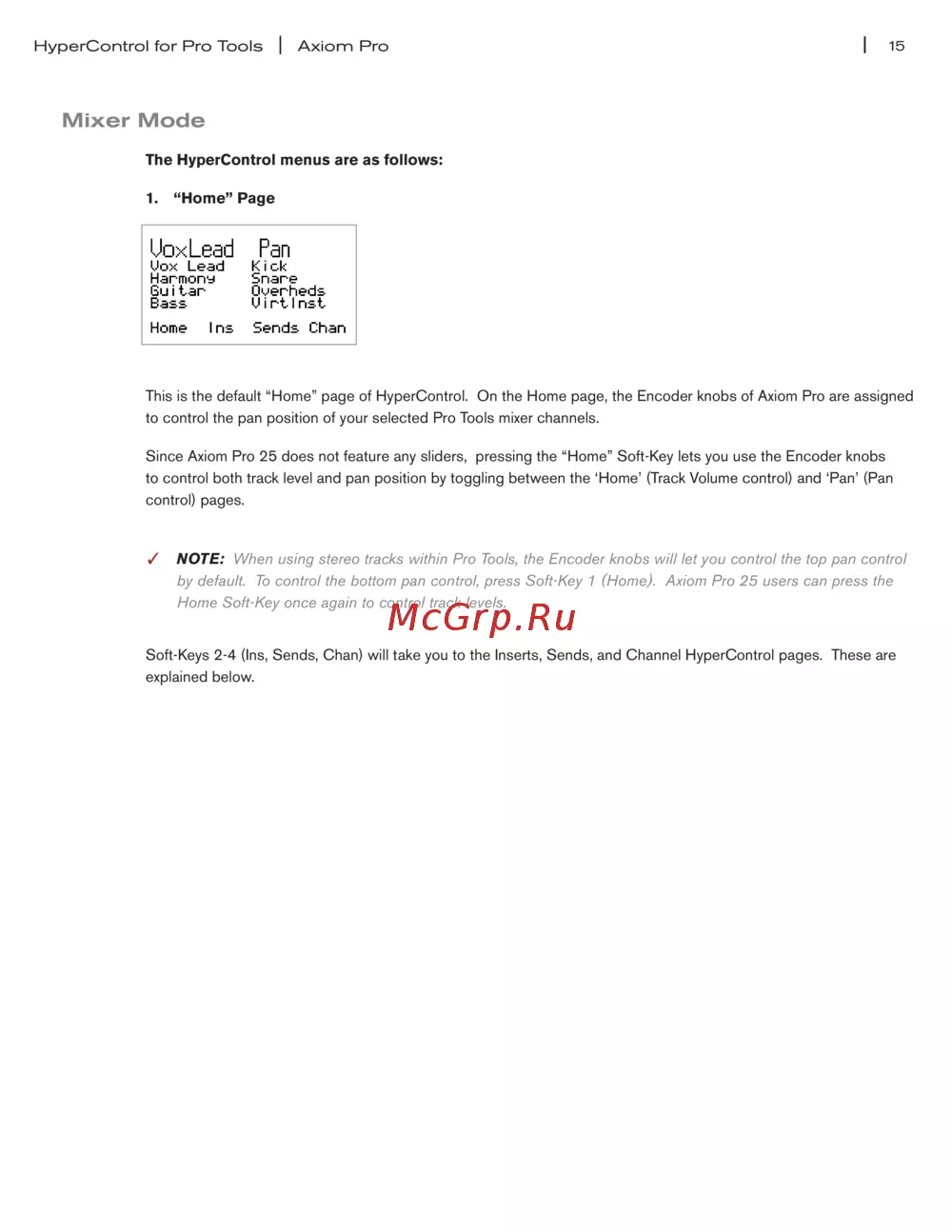 by default. To control the bottom pan control, press Soft-Key 1 (Home). Axiom Pro 25 users can press the
