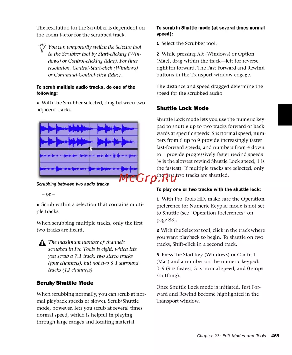 ![M-Audio Pro Tools Recording Studio [487/1112] You can temporarily switch the selector tool to the scrubber tool by start clicking win dows or control clicking mac for finer resolution control start click windows or command control click mac](/views2/1789456/page487/bg1e7.png)