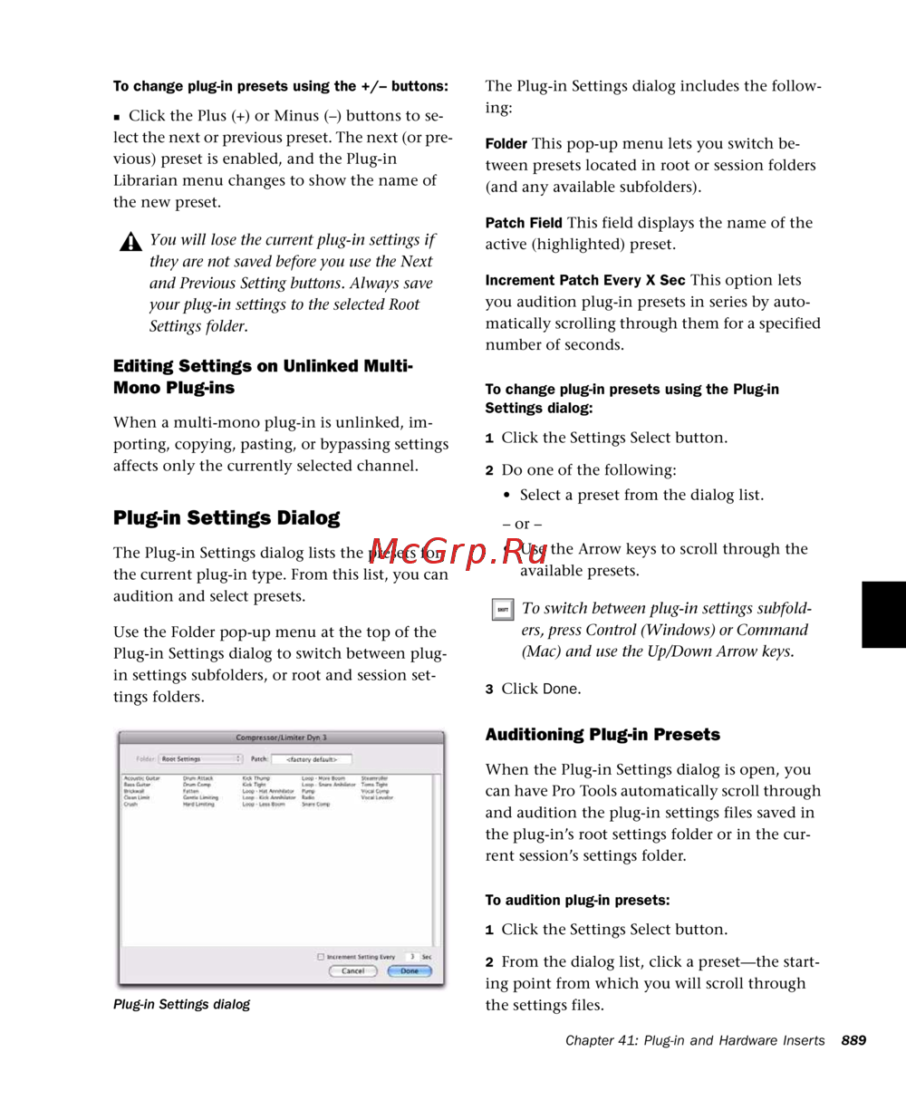 ![M-Audio Pro Tools Recording Studio [907/1112] You will lose the current plug in settings if they are not saved before you use the next and previous setting buttons always save your plug in settings to the selected root settings folder](/views2/1789456/page907/bg38b.png)