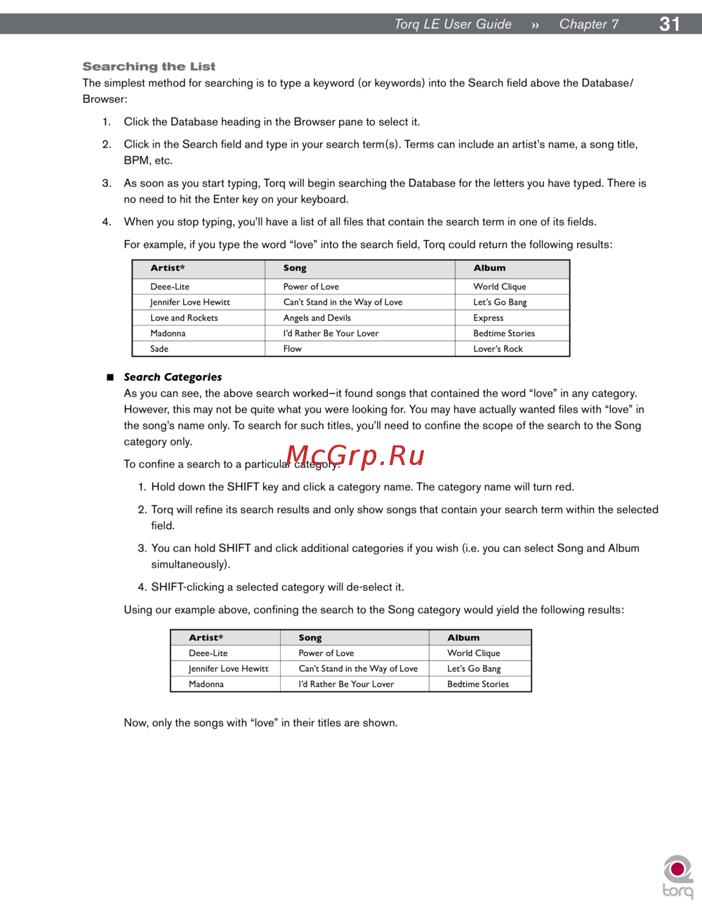 For example, if you type the word “love” into the search field, Torq could return the following results: