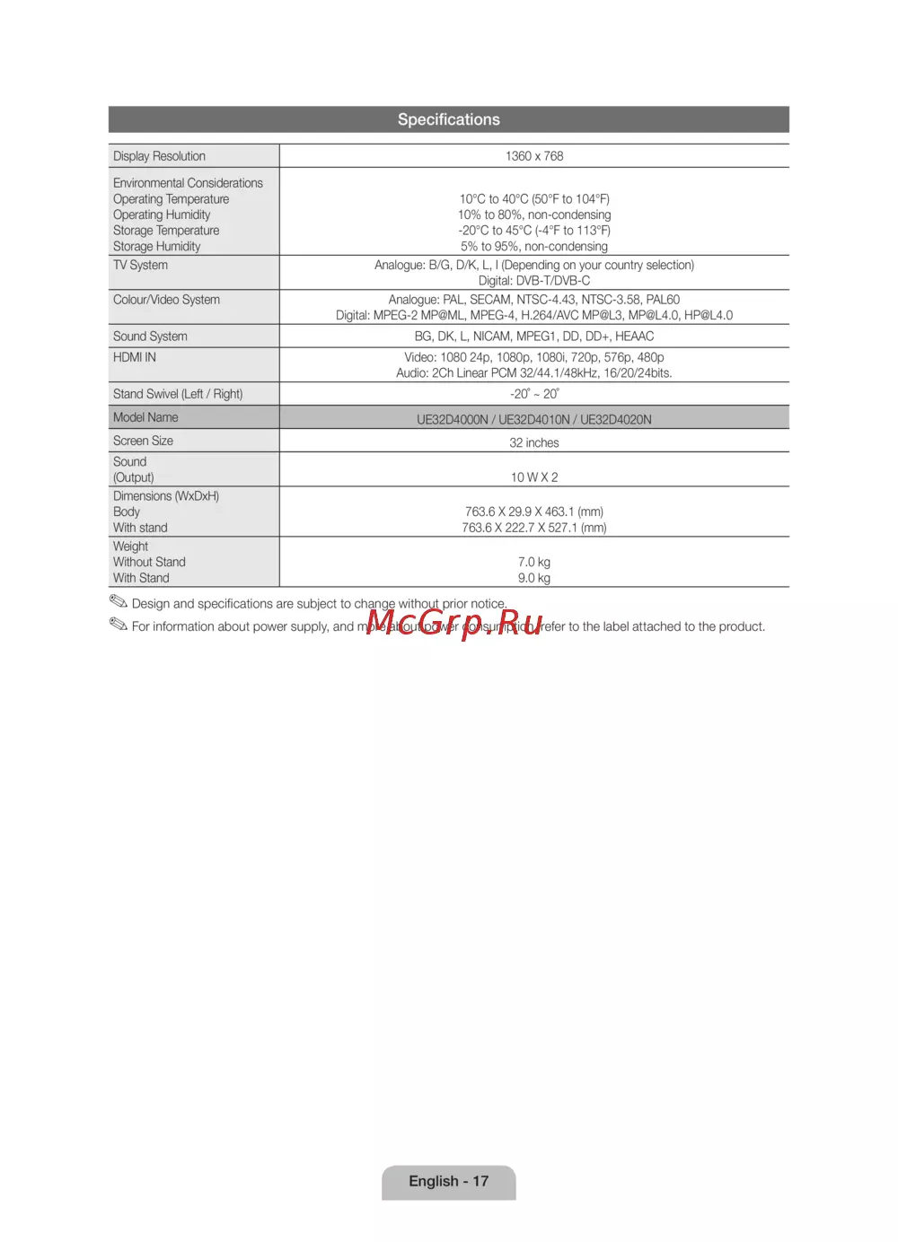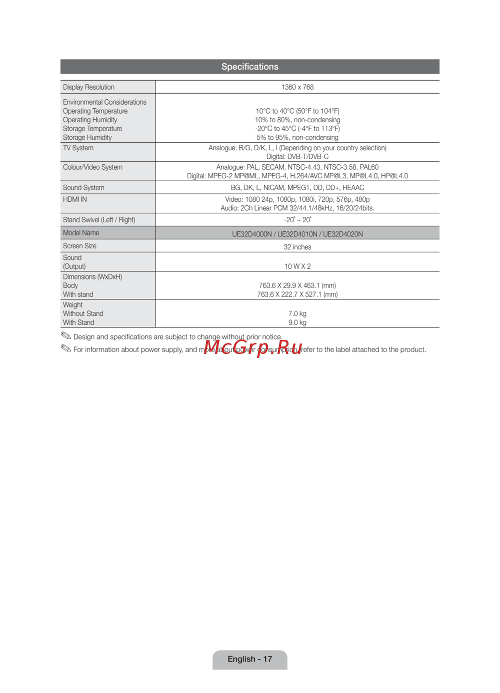 ![Samsung UE32D4020NW [17/65] Specifications](/views2/1000791/page17/bg11.png)