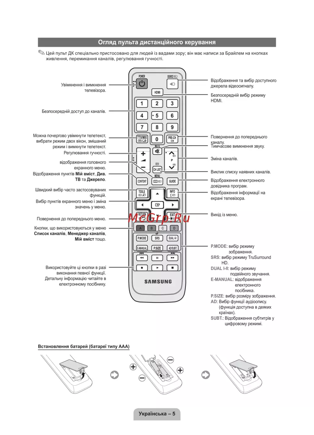 Samsung UE32D4020NW [37/65] Цей пульт дк спеціально пристосовано для людей із вадами зору він має написи за брайлем на кнопках