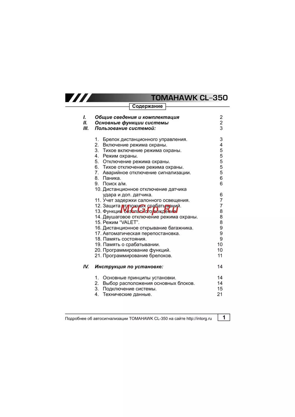 Подробнее об автосигнализации TOMAHAWK CL-350 на сайте http://intorg.ru