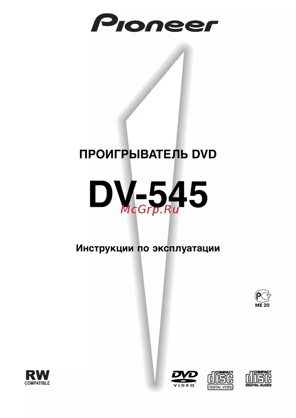 ПРОИГРЫВАТЕЛЬ DVD DV 545 Инструкции по эксплуатации ME 20 RW COMPATIBLE VIDEO DIGITAL VIDEO DIGITAL AUDIO