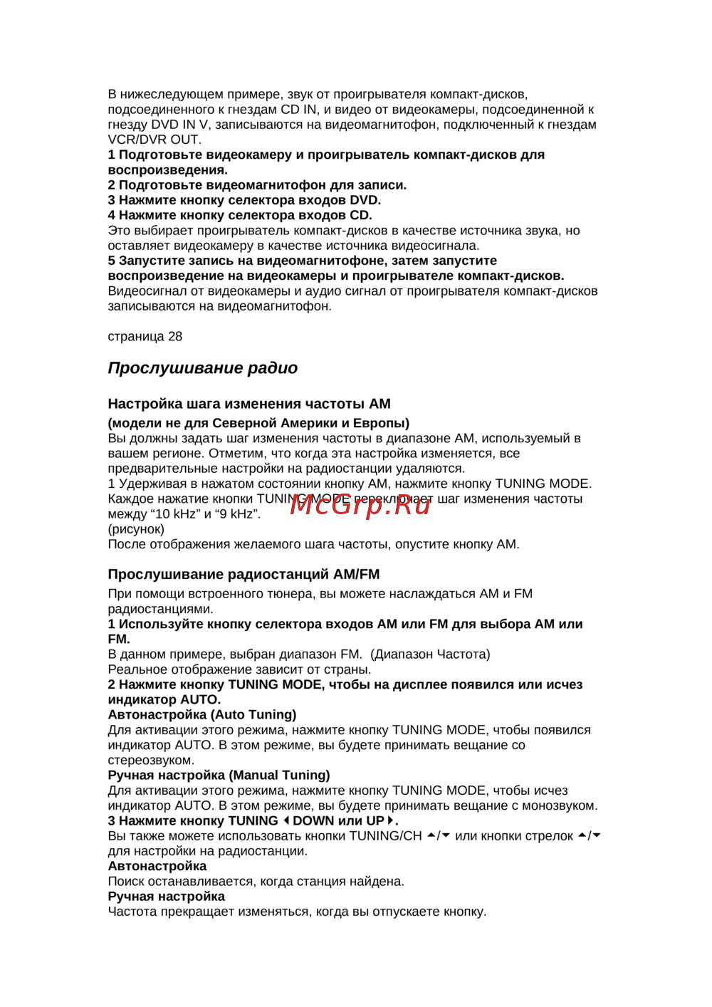 При помощи встроенного тюнера, вы можете наслаждаться АМ и FM