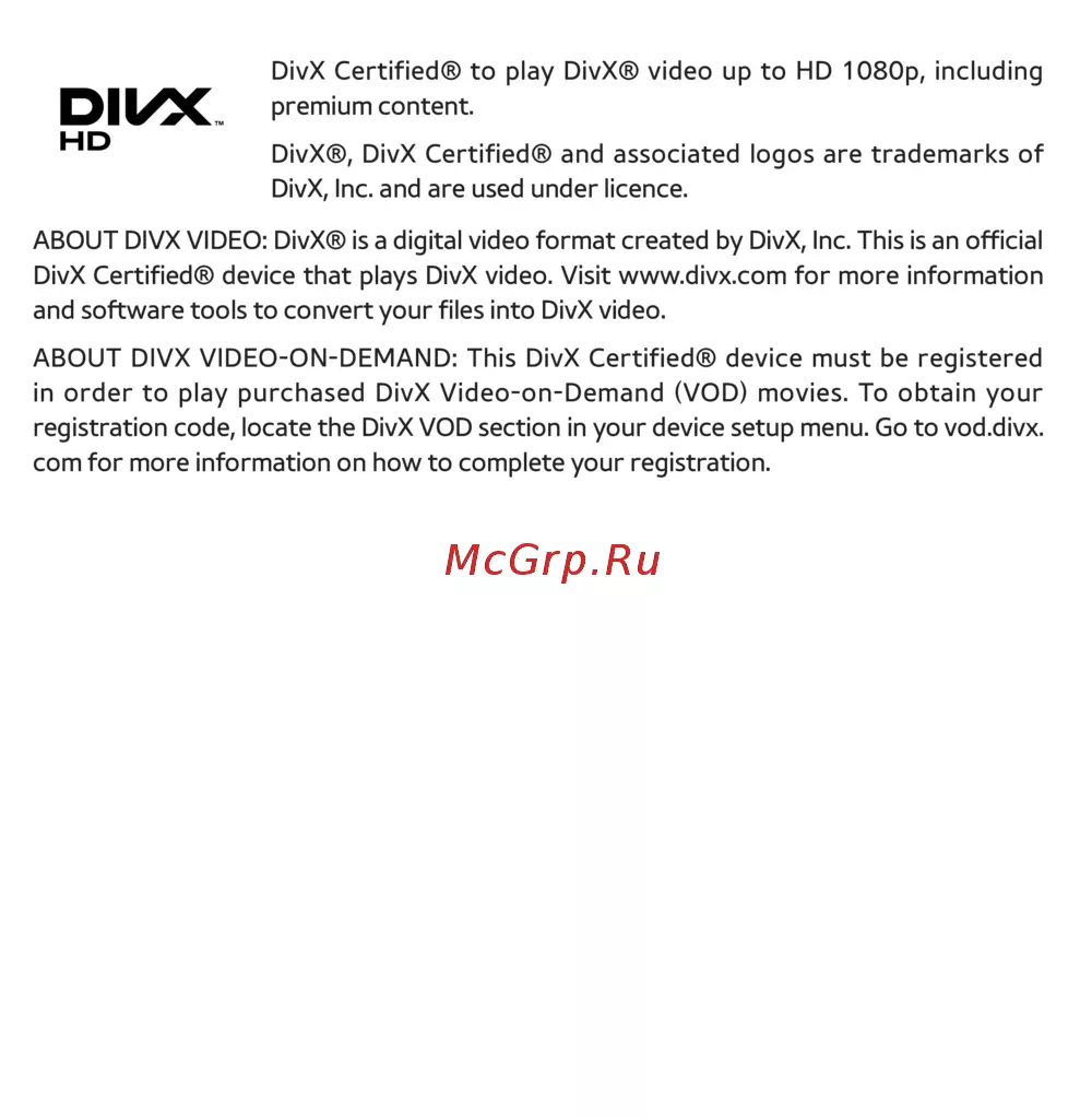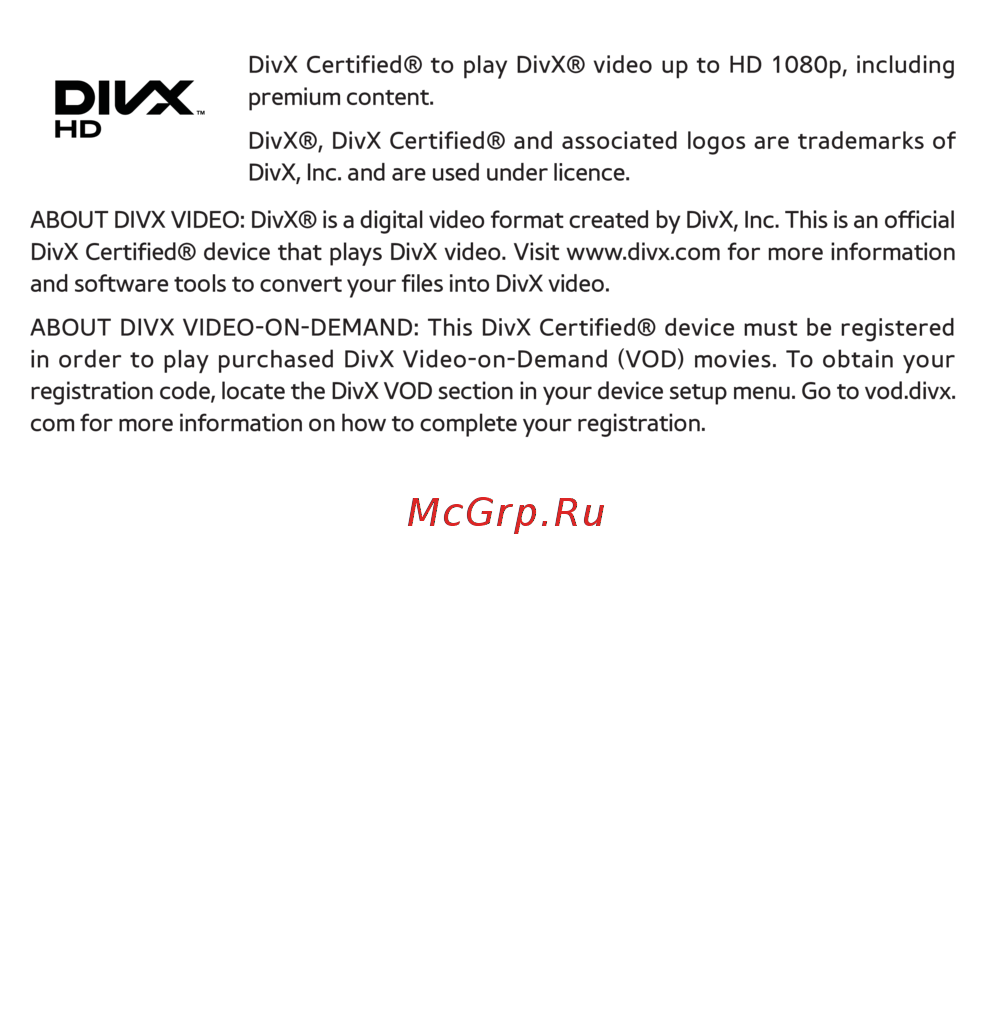 DivX Certied® device that plays DivX video. Visit www.divx.com for more information