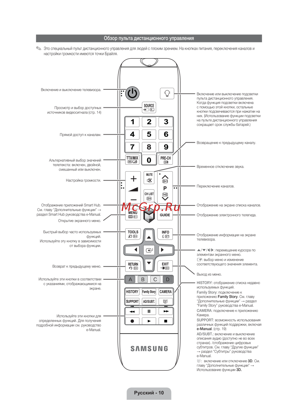 Samsung PS64E8000GS [33/93] Это специальный пульт дистанционного управления для людей с плохим зрением на кнопках питания переключения каналов и настройки громкости имеются точки брайля