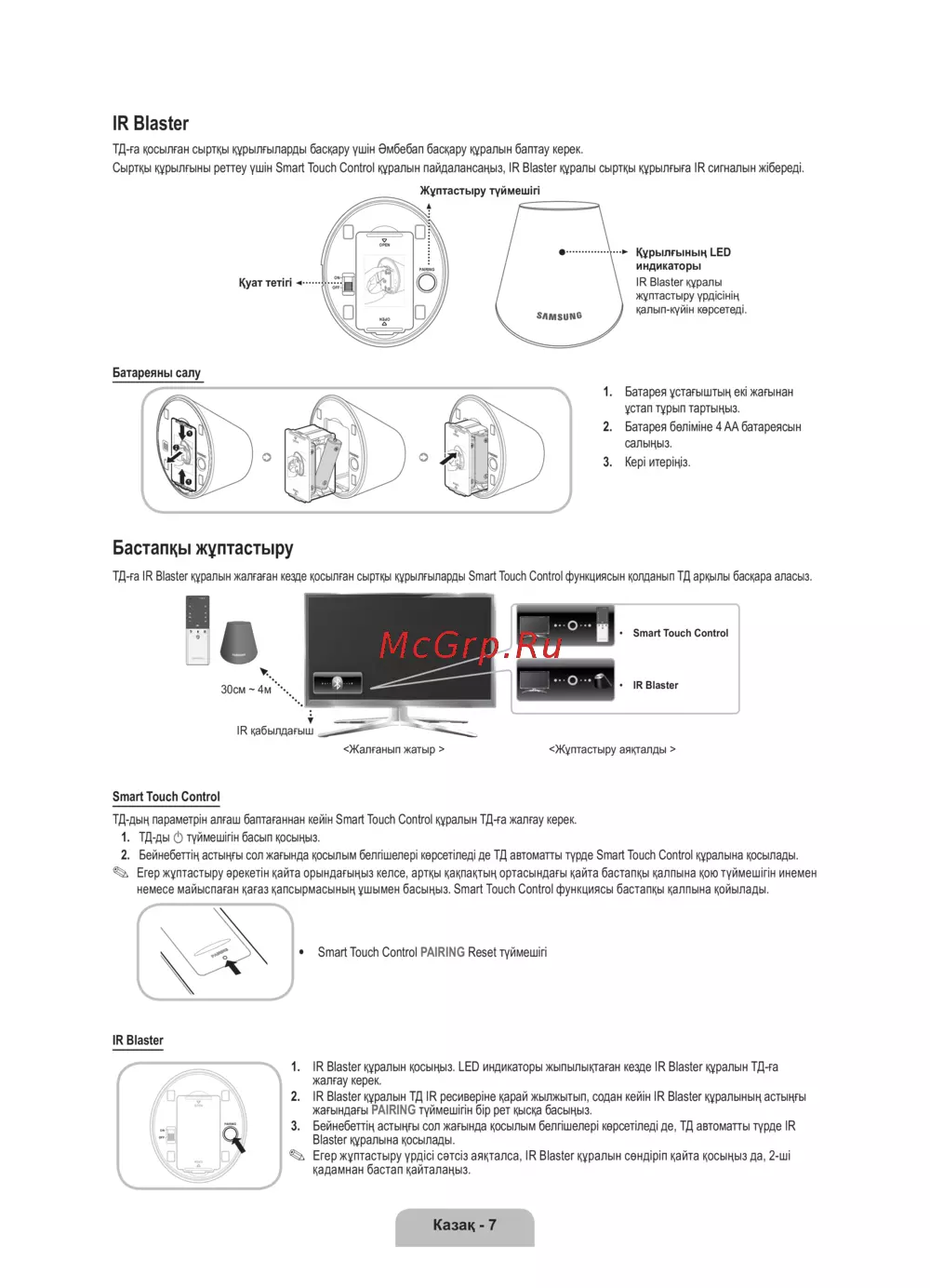 а IR Blaster құралын жалғаған кезде қосылған сыртқы құрылғыларды Smart Touch Control функциясын қолданып ТД арқылы басқара аласыз.