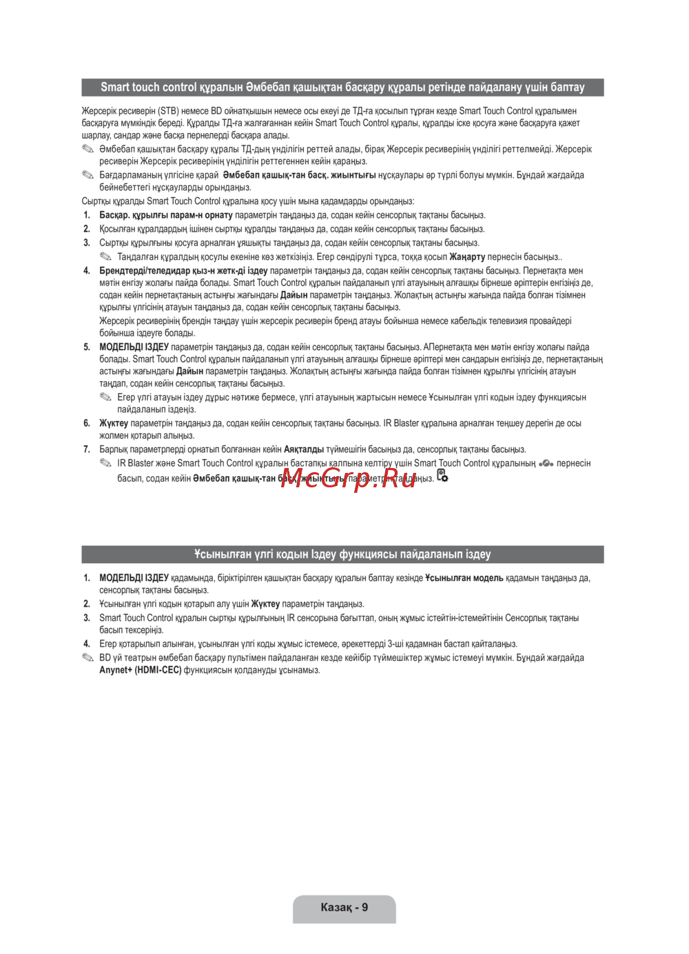 Бағдарламаның■үлгісіне■қарай■■Әмбебап қашық-тан басқ. жиынтығы■нұсқаулары■әр■түрлі■болуы■мүмкін.■Бұндай■жағдайда■