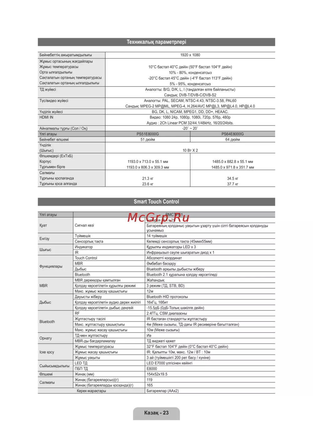 ![Samsung PS64E8000GS [92/93] Техникалық параметрлері](/views2/1798042/page92/bg5c.png)