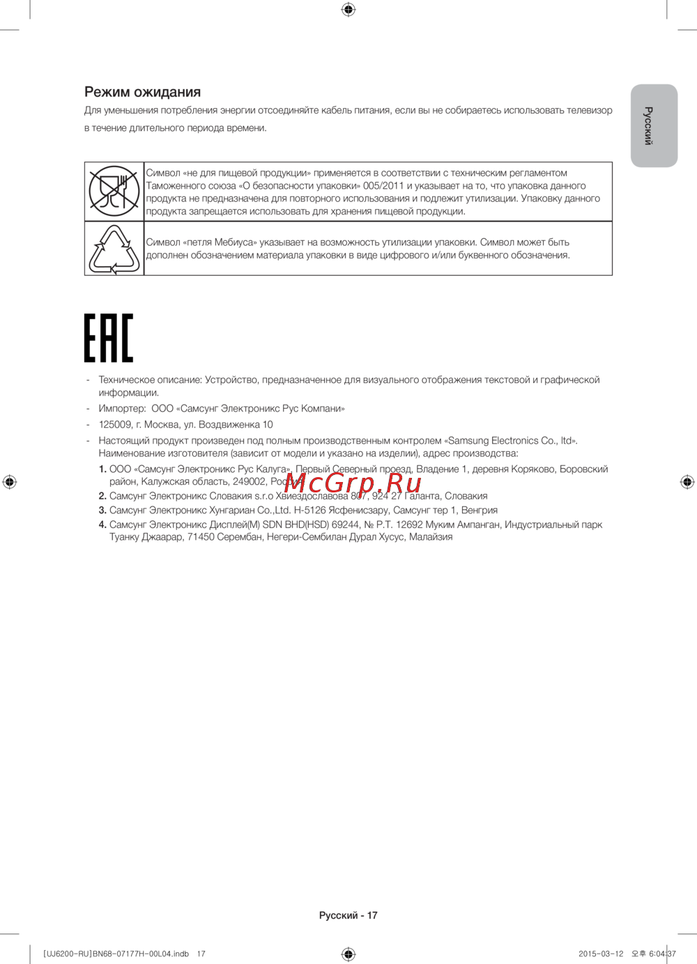 - Импортер: ООО «Самсунг Электроникс Рус Компани»