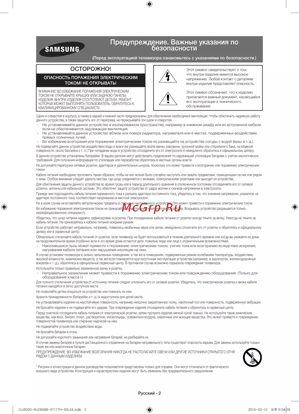 Samsung UE55J6300A — важные указания по безопасности при эксплуатации устройств [2/68]