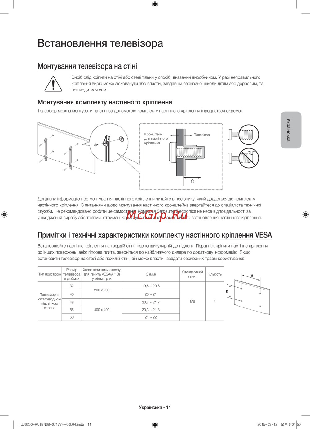 - Заходи безпеки кріплення телевізора на стіні p.47