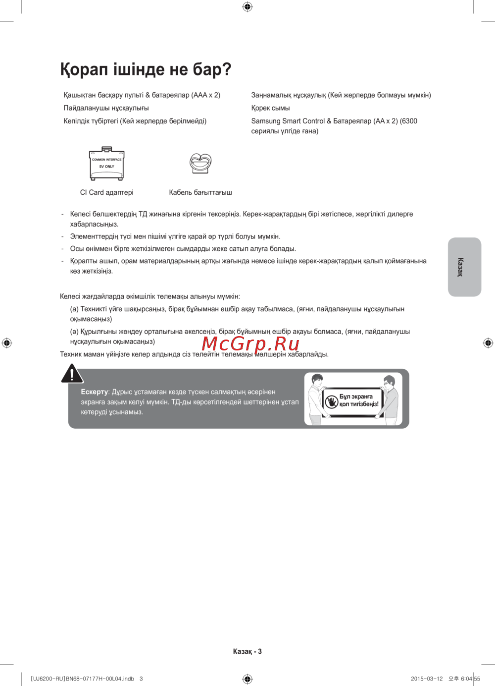 Кепілдік түбіртегі (Кей жерлерде берілмейді) Samsung Smart Control & Батареялар (AA x 2) (6300