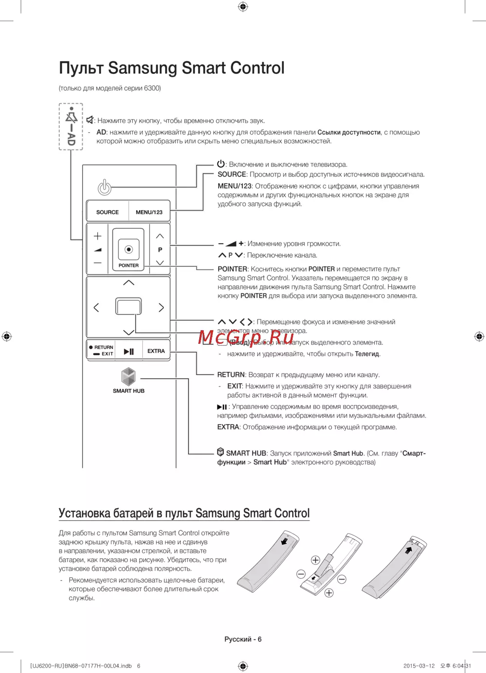 Samsung UE55J6300A [6/68] Пульт samsung smart control