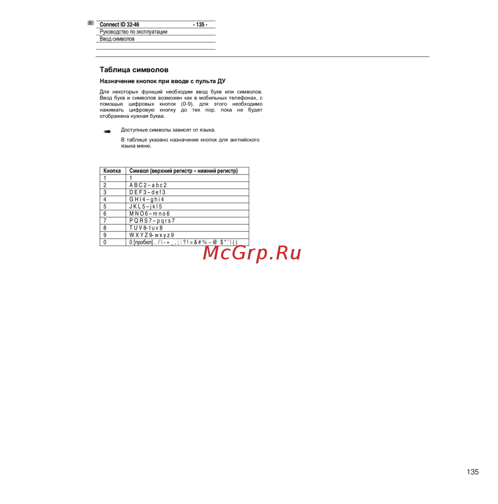 Loewe Connect ID 51462Z84 Black/White [135/164] Таблица символов