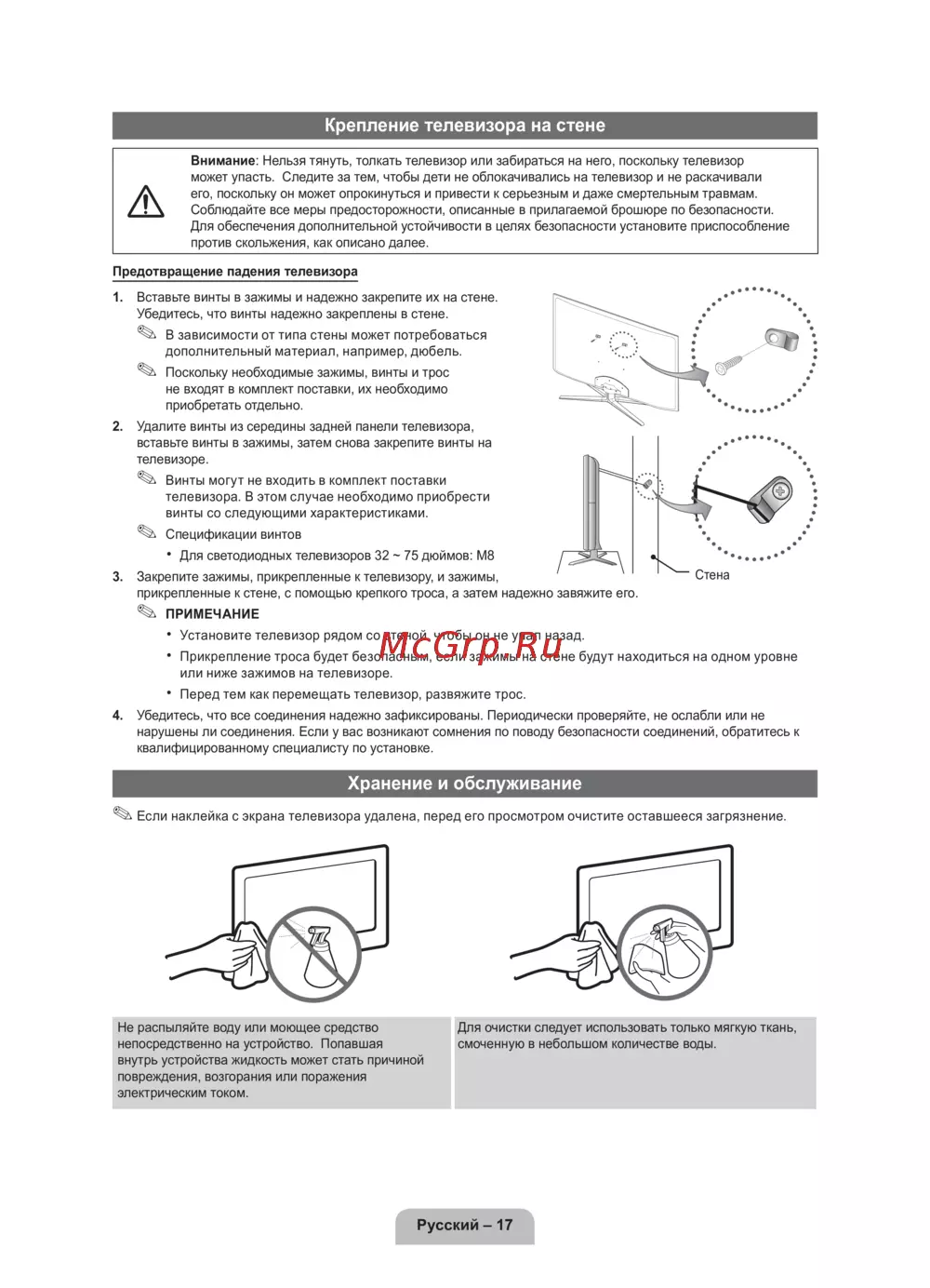 Samsung UE-32D5800 — безопасное крепление телевизора на стене: советы и рекомендации [35/73]