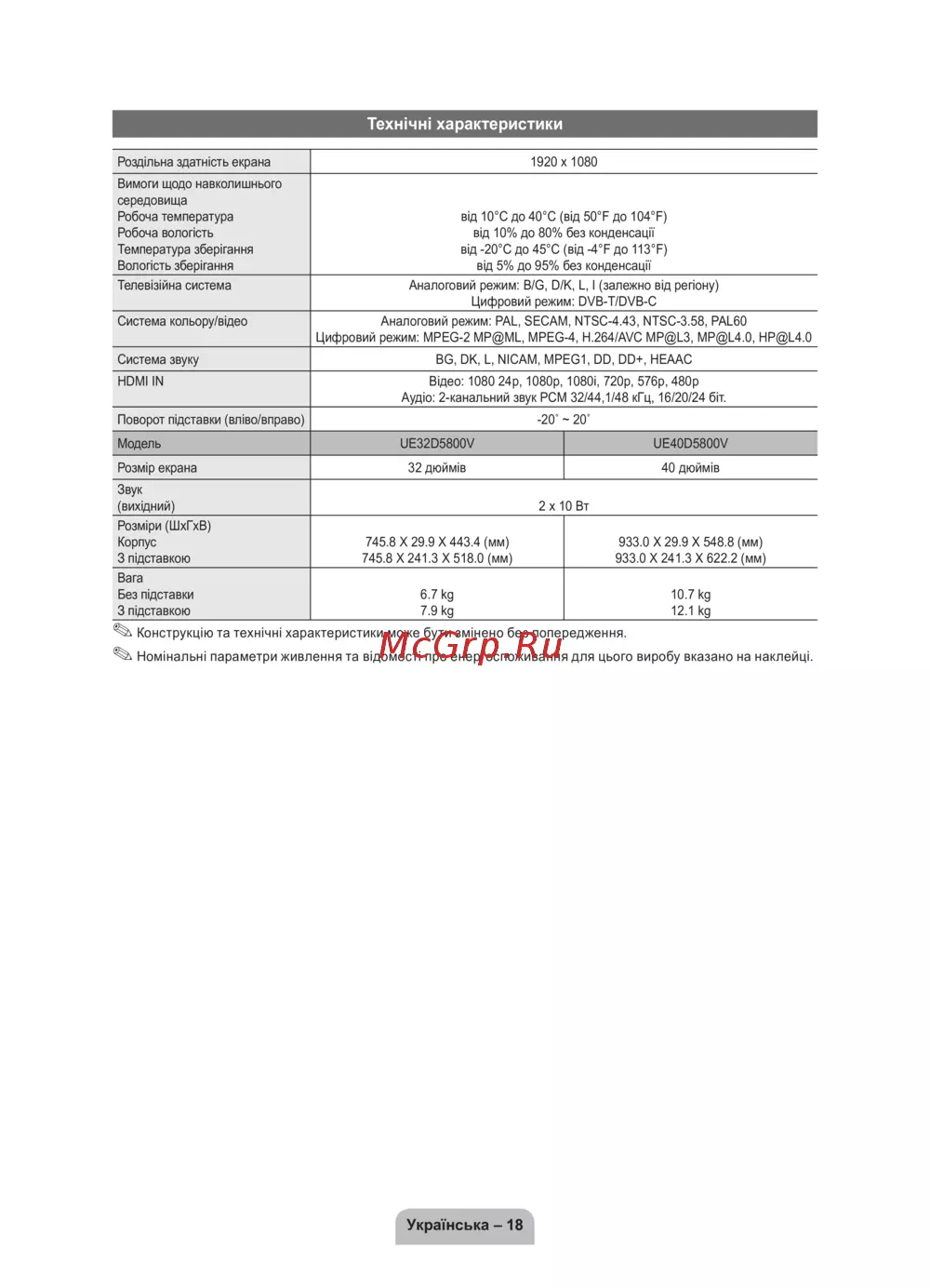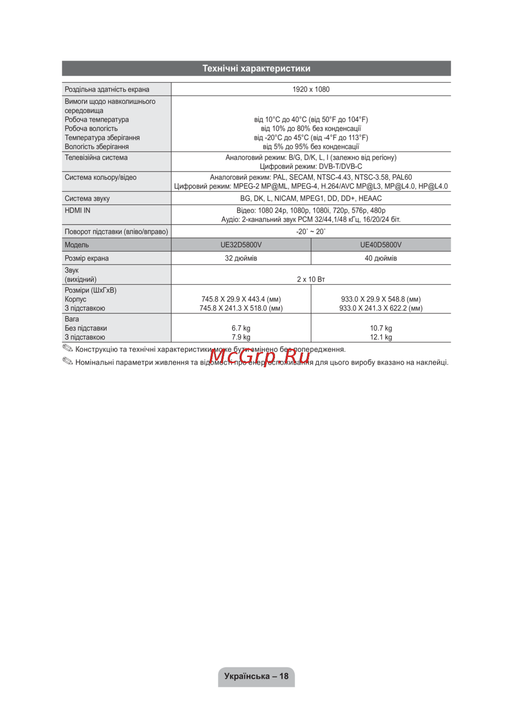- Конструкцію та технічні характеристики може бути змінено без попередження p.54
