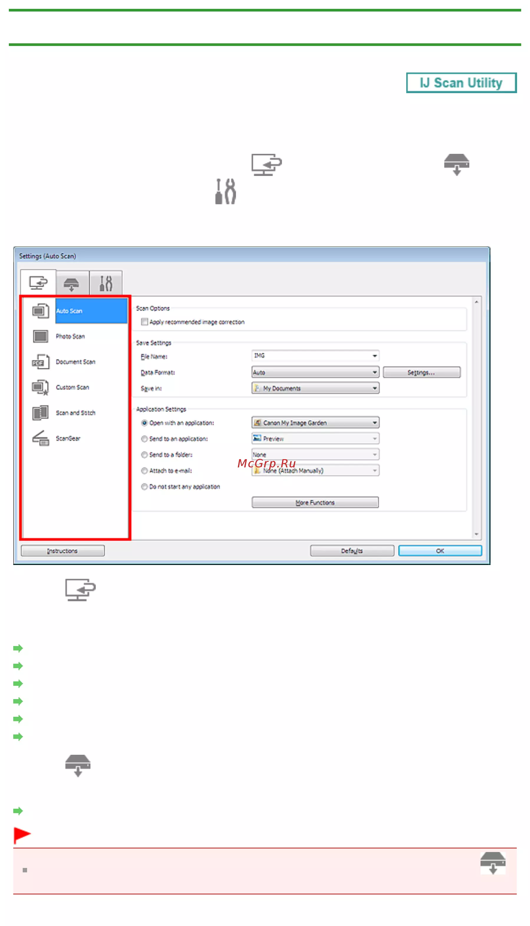 Стр. 424 из 751 стр.Главный экран IJ Scan Utility