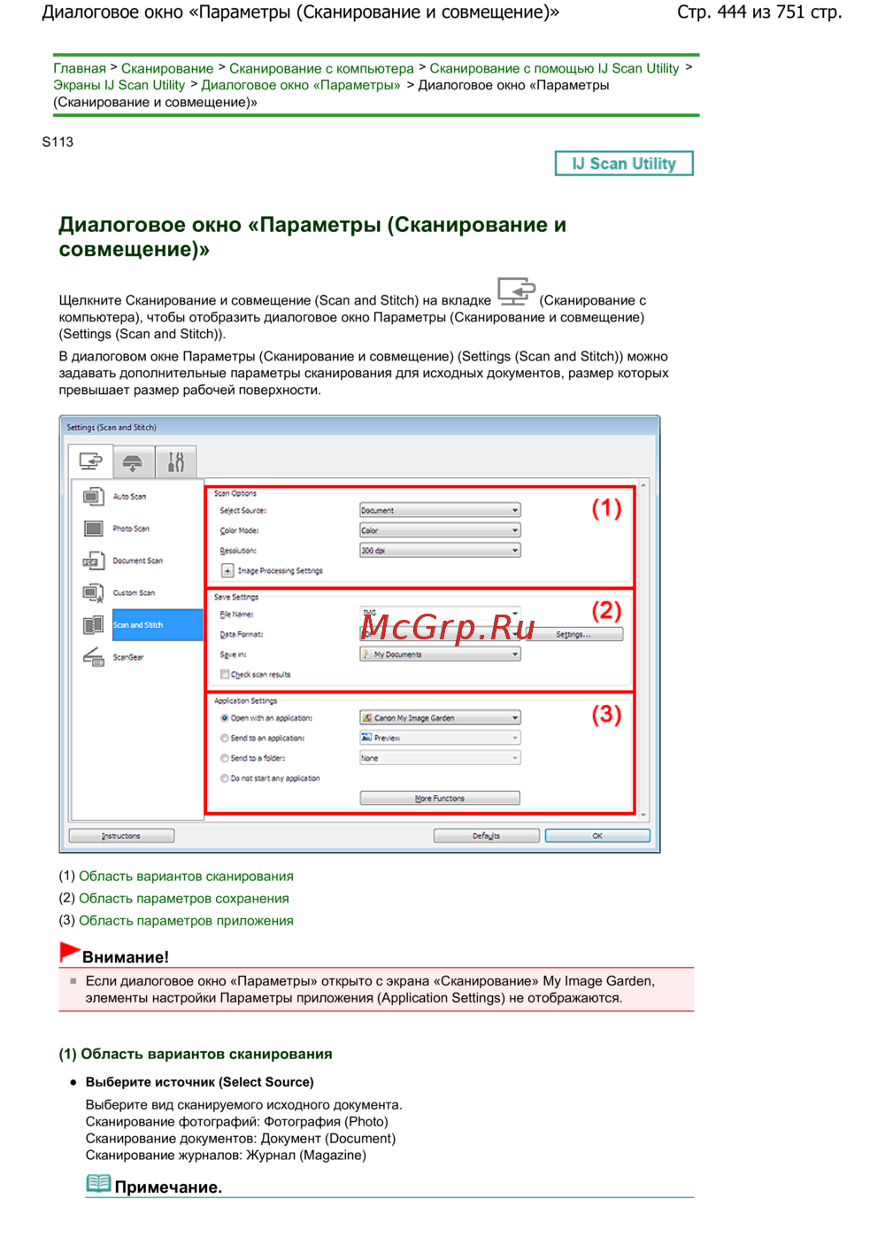 Стр. 444 из 751 стр.Диалоговое окно «Параметры (Сканирование и совмещение)»