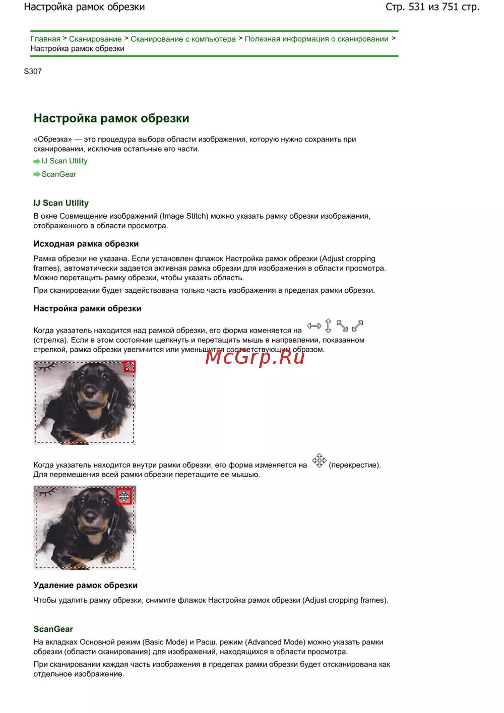 Canon Pixma MP230 — настройка рамок обрезки для эффективного сканирования изображений [531/751]