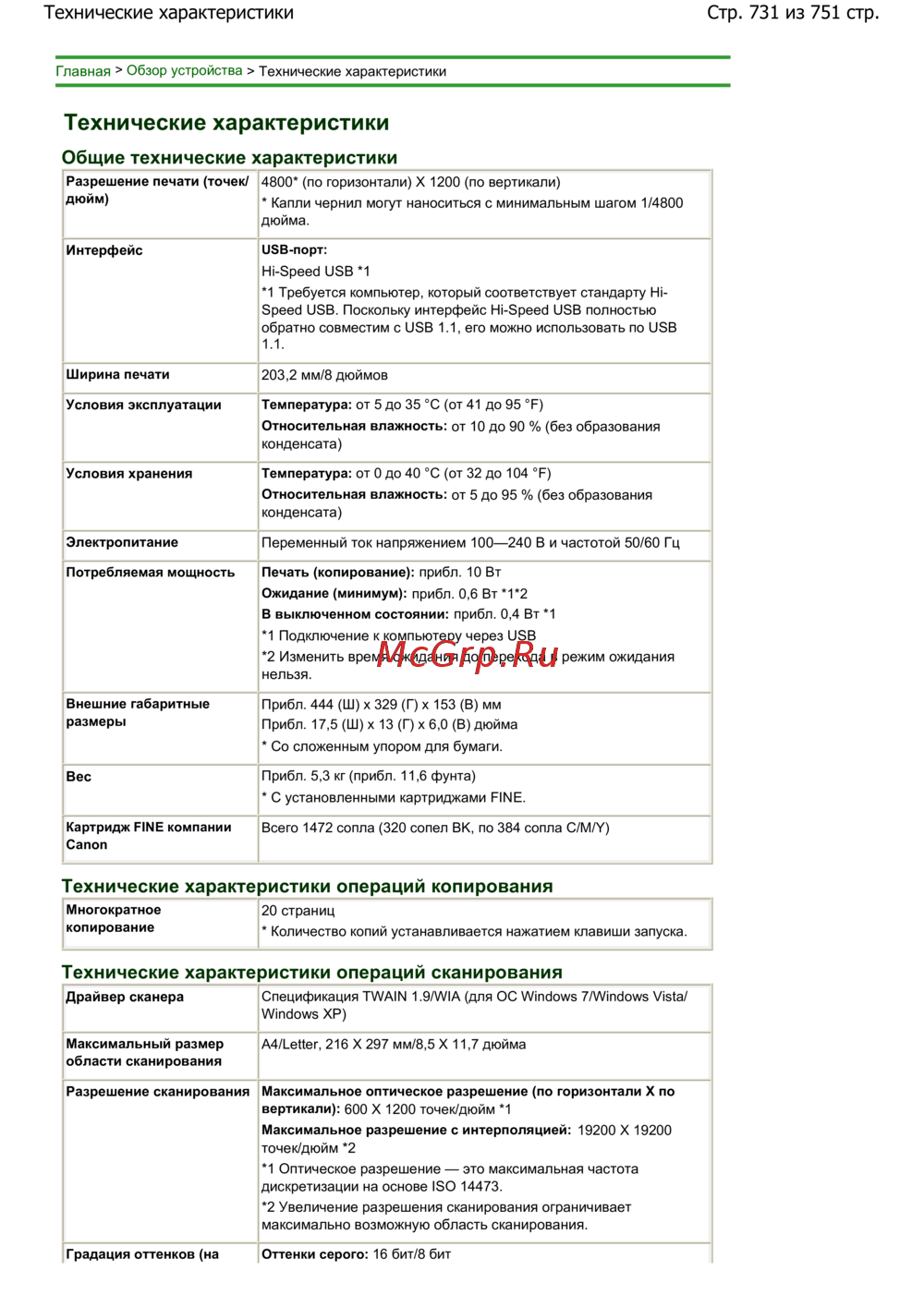 Canon Pixma MP230 — технические характеристики устройства: печать, сканирование и копирование [731/751]