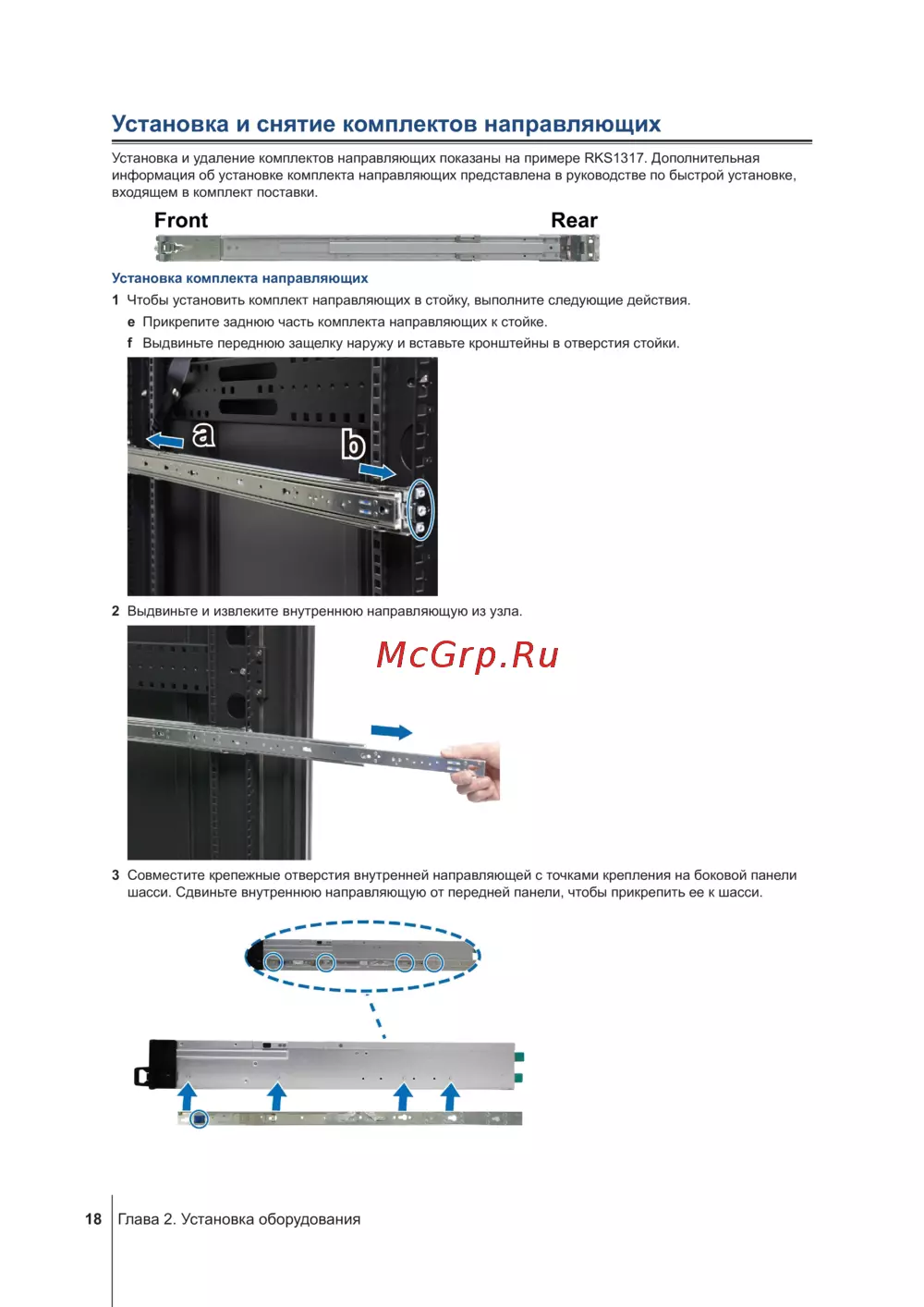 информация об установке комплекта направляющих представлена в руководстве по быстрой установке,