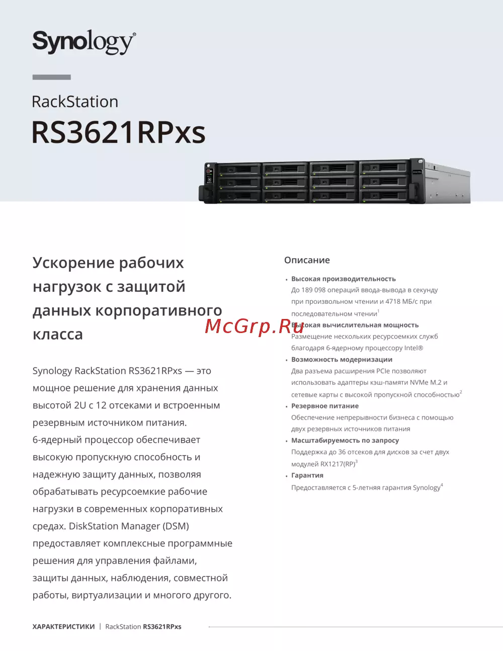 Synology RS3621RPxs — высокопроизводительное решение для хранения данных 2U [1/8]