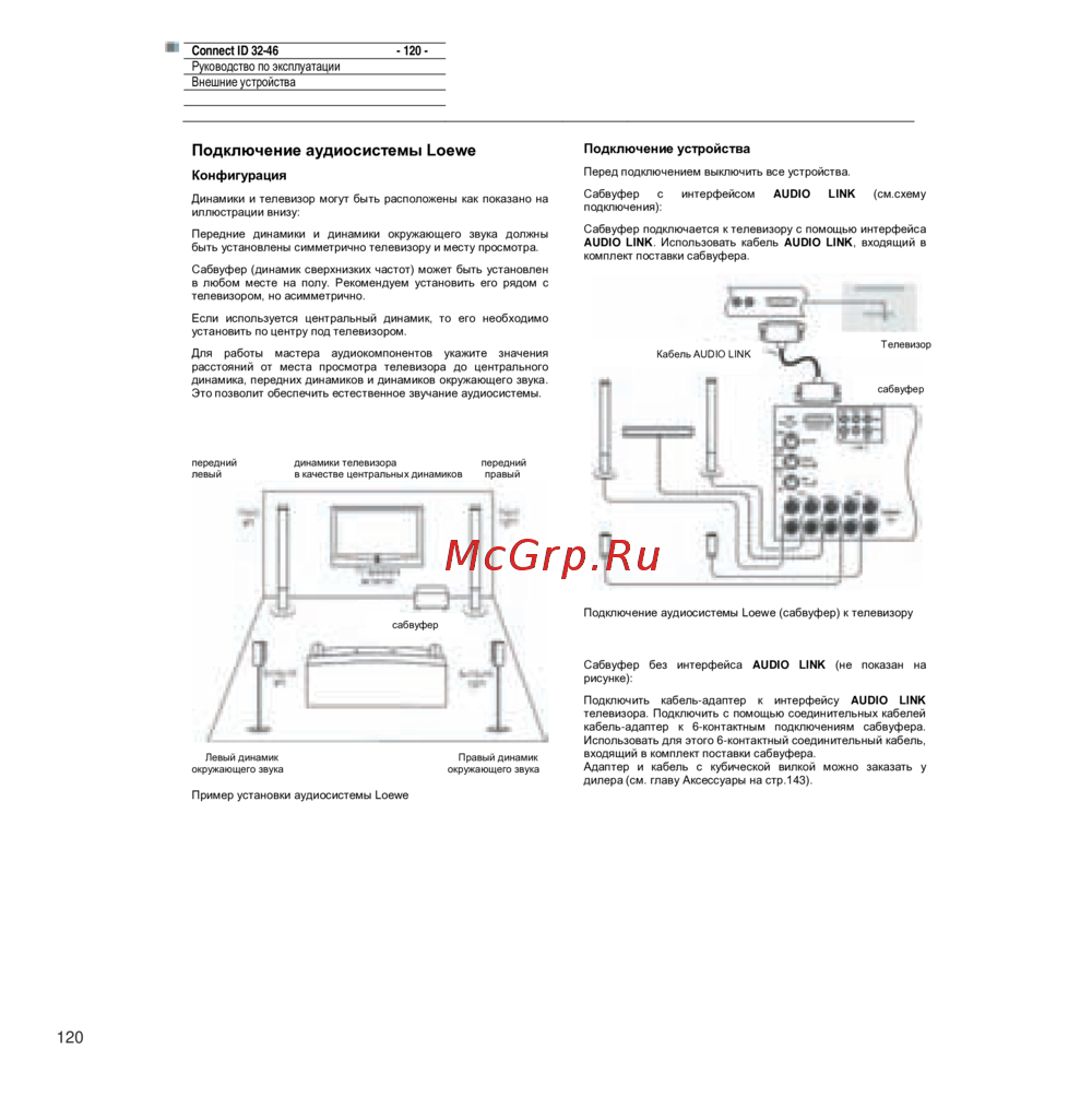 Сабвуфер с интерфейсом AUDIO LINK (см.схему