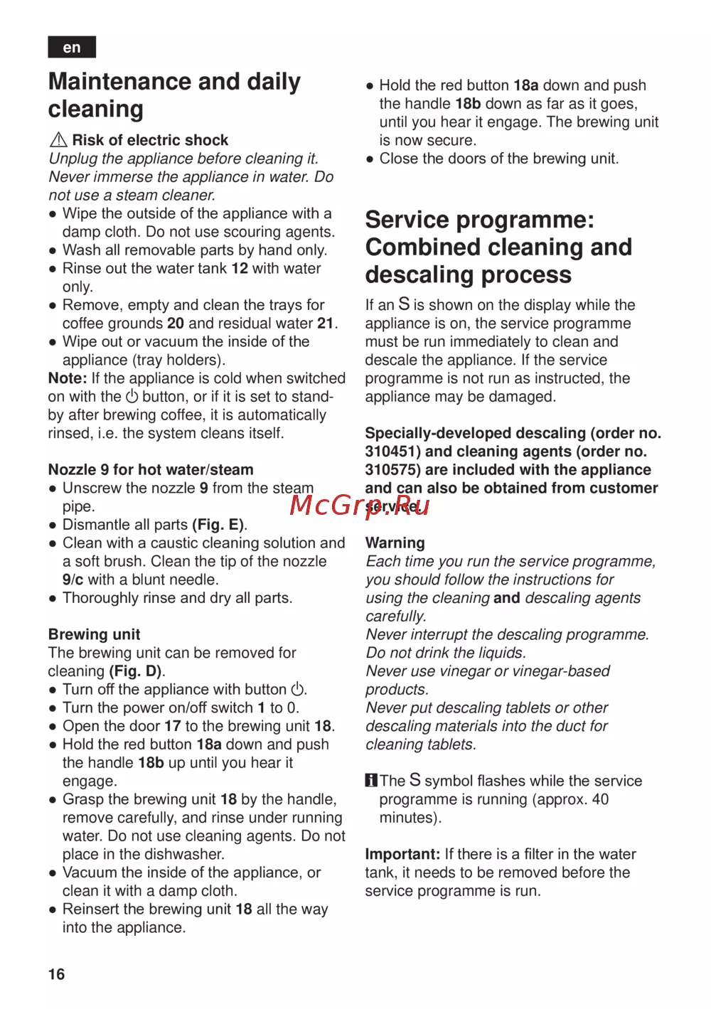 - Service programm kombinierter entkalkungs und reinigungsprozess p.12