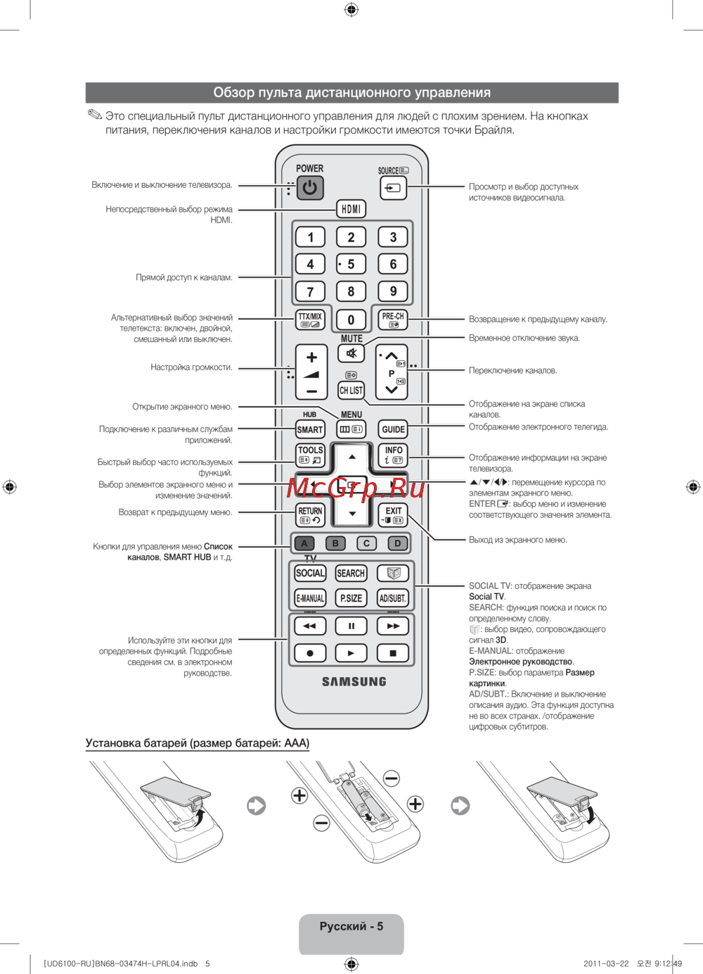 Samsung UE32D6100SW — обзор пульта дистанционного управления для людей с плохим зрением [27/84]