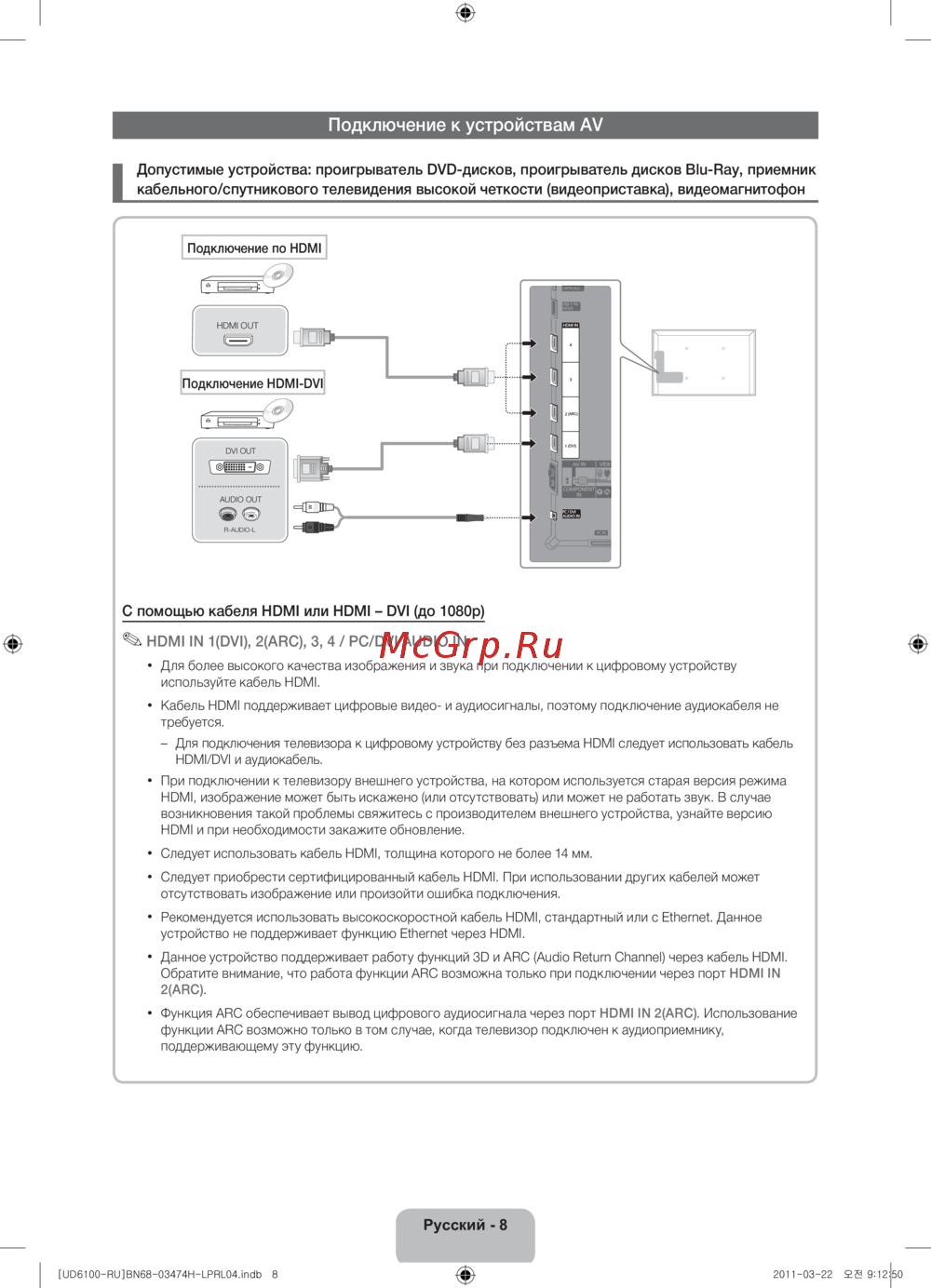 Samsung UE32D6100SW — подключение устройств AV: HDMI и DVI для качественного звука и изображения [30/84]